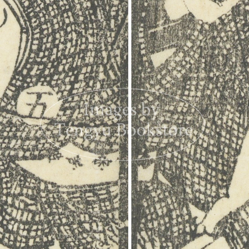 本来は2枚に分けて描かれた作品であるため、色味や図案の整合に若干の不統一があることをご了承ください。