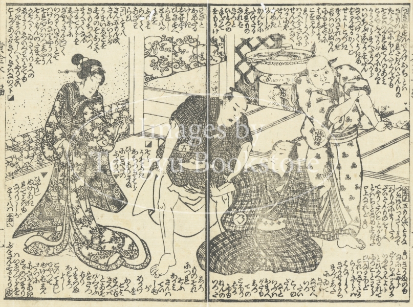 江戸時代後期に刊行された草双紙「黄金水大盡盃」(おうごんすいだいじんさかずき)の挿絵。