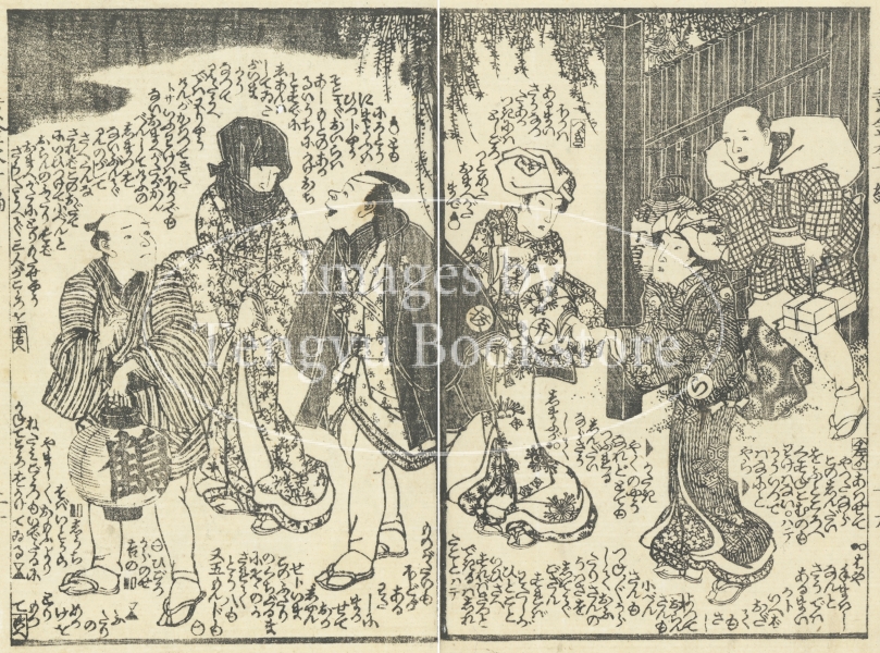 江戸後期の戯作者 為永春水(1790-1844)の物語に、浮世絵師 歌川国輝(生没年不詳)・国光(生没年不詳)・国貞(1786-1865)・国芳(1798-1861)・芳幾(1833-1904)らが挿絵をつけています。