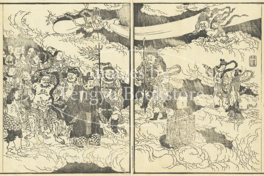 本来は2枚に分けて描かれた作品であるため、色味や図案の整合に若干の不統一があることをご了承ください。