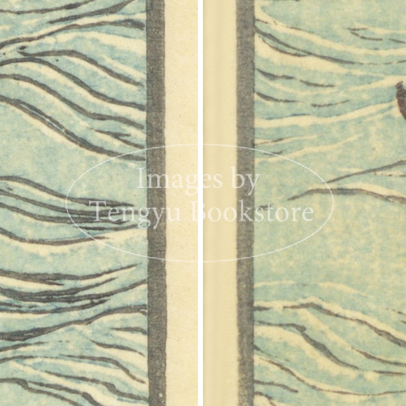 本来は2枚に分けて描かれた作品であるため、色味や図案の整合に若干の不統一があることをご了承ください。