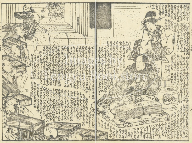 江戸時代後期に刊行された草双紙「黄金水大盡盃」(おうごんすいだいじんさかずき)の挿絵。