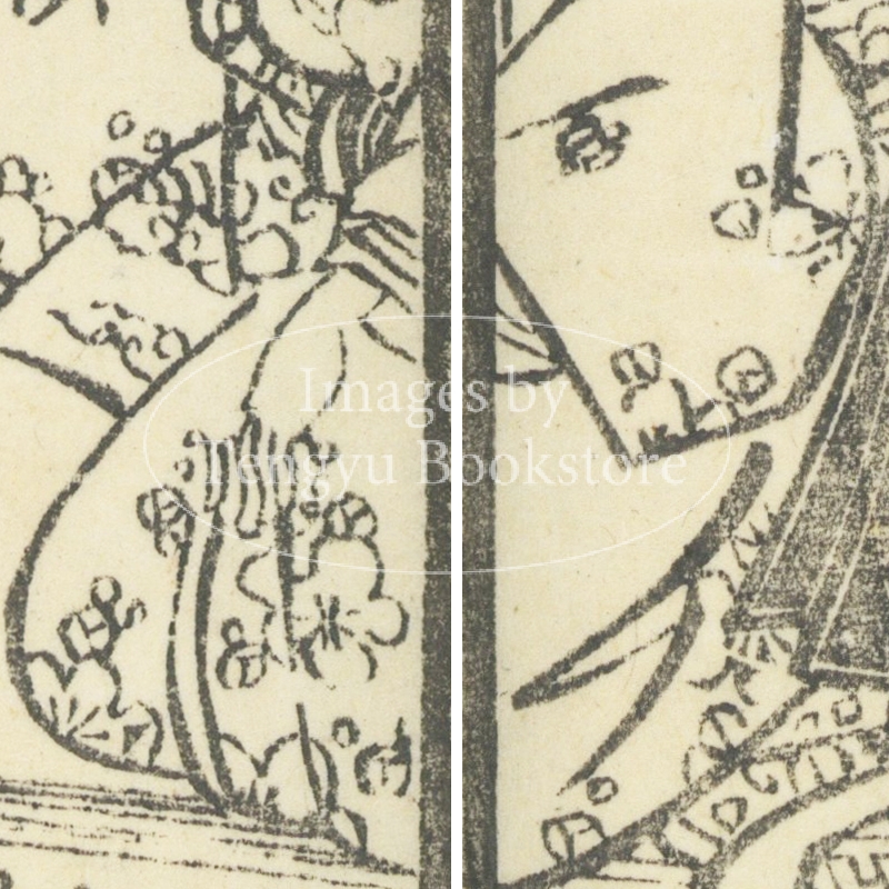 本来は2枚に分けて描かれた作品であるため、色味や図案の整合に若干の不統一があることをご了承ください。