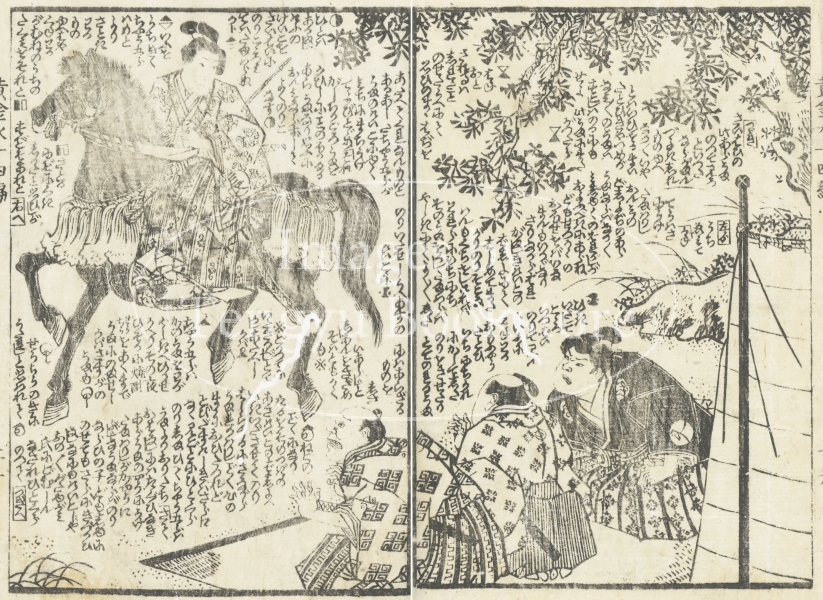 江戸時代後期に刊行された草双紙「黄金水大盡盃」(おうごんすいだいじんさかずき)の挿絵。