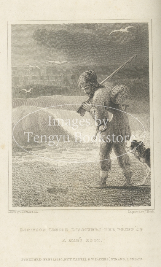 18世紀イギリスの小説家ダニエル・デフォー(1660-1731)の代表作「ロビンソン・クルーソー」19世紀刊行版の挿絵。