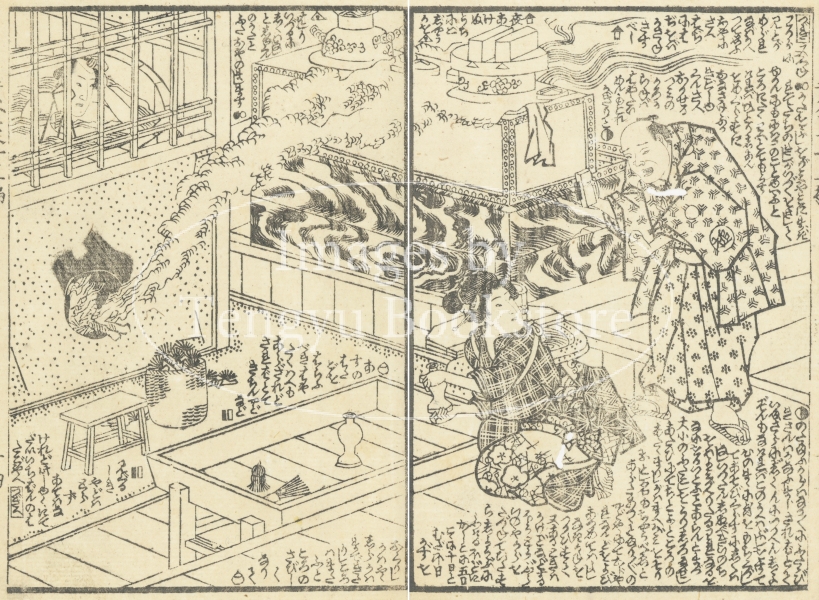 江戸時代後期に刊行された草双紙「黄金水大盡盃」(おうごんすいだいじんさかずき)の挿絵。
