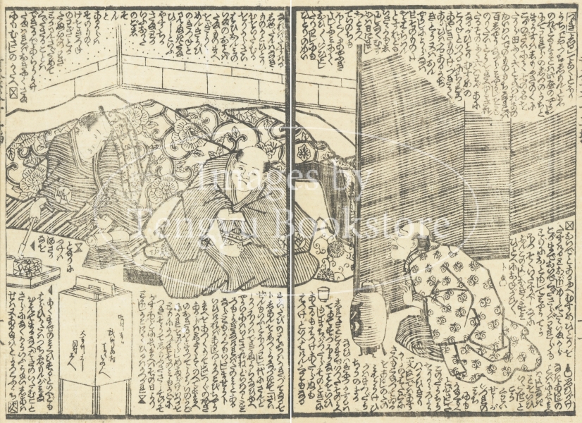 江戸時代後期に刊行された草双紙「黄金水大盡盃」(おうごんすいだいじんさかずき)の挿絵。