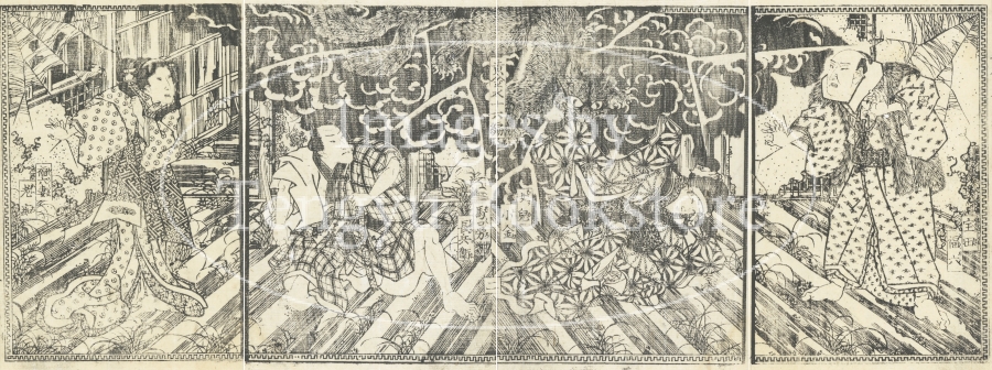 江戸後期の戯作者 為永春水(1790-1844)の物語に、浮世絵師 歌川国輝(生没年不詳)・国光(生没年不詳)・国貞(1786-1865)・国芳(1798-1861)・芳幾(1833-1904)らが挿絵をつけています。