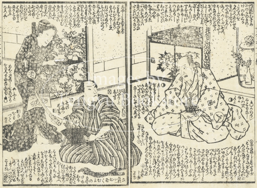 江戸時代後期に刊行された草双紙「黄金水大盡盃」(おうごんすいだいじんさかずき)の挿絵。