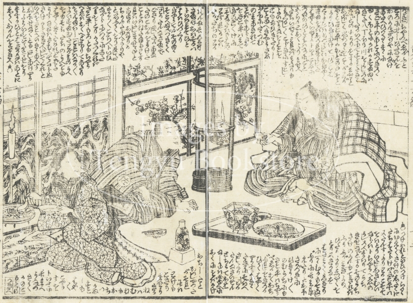 江戸時代後期に刊行された草双紙「黄金水大盡盃」(おうごんすいだいじんさかずき)の挿絵。
