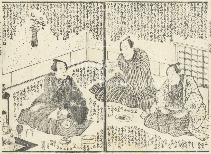 江戸時代後期に刊行された草双紙「黄金水大盡盃」(おうごんすいだいじんさかずき)の挿絵。