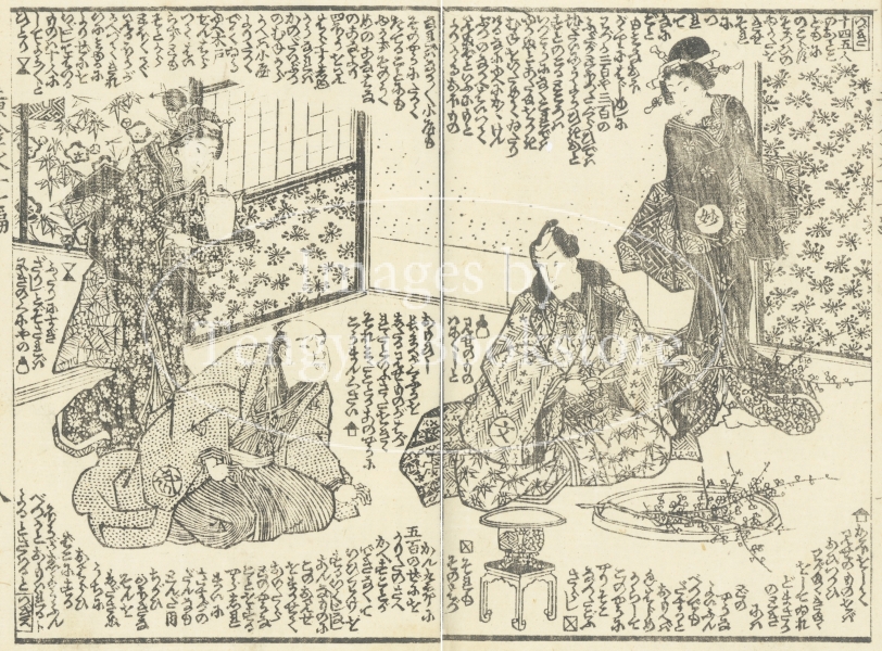 江戸時代後期に刊行された草双紙「黄金水大盡盃」(おうごんすいだいじんさかずき)の挿絵。