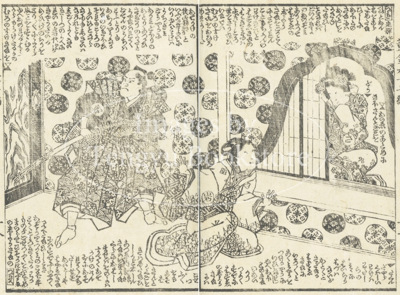 江戸時代後期に刊行された草双紙「黄金水大盡盃」(おうごんすいだいじんさかずき)の挿絵。