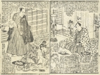 江戸時代後期に刊行された草双紙「黄金水大盡盃」(おうごんすいだいじんさかずき)の挿絵。