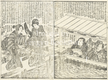 江戸時代後期に刊行された草双紙「黄金水大盡盃」(おうごんすいだいじんさかずき)の挿絵。