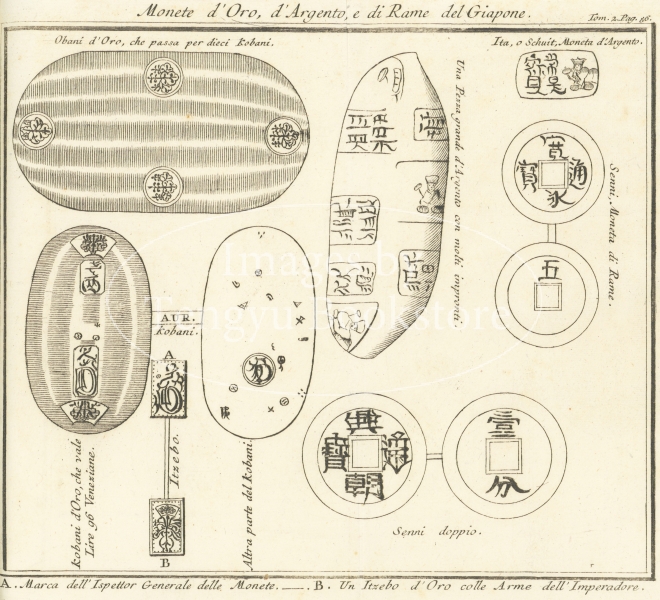 17-18世紀イギリスの歴史家トマス・サーモン(1679-1767)による世界史書「万国民現代史」の第2巻「日本および東南アジア諸国」(イタリア語訳版)に収録された図版。