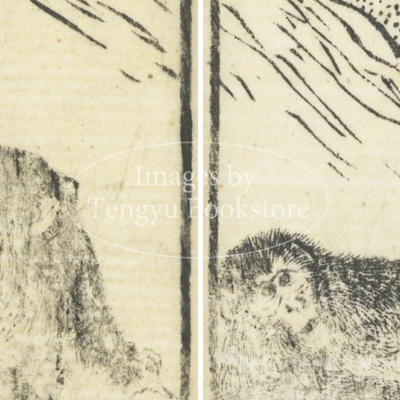 本来は2枚に分けて描かれた作品であるため、色味や図案の整合に若干の不統一があることをご了承ください。