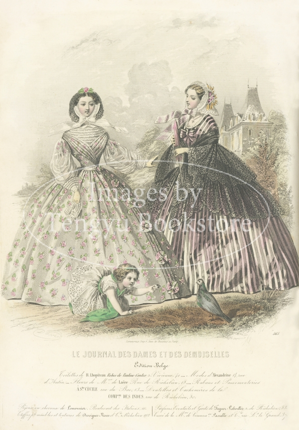 19世紀フランスのファッション雑誌「Journal des Dames et des Demoiselles / 婦人と令嬢のための雑誌」収録のファッション・プレート。