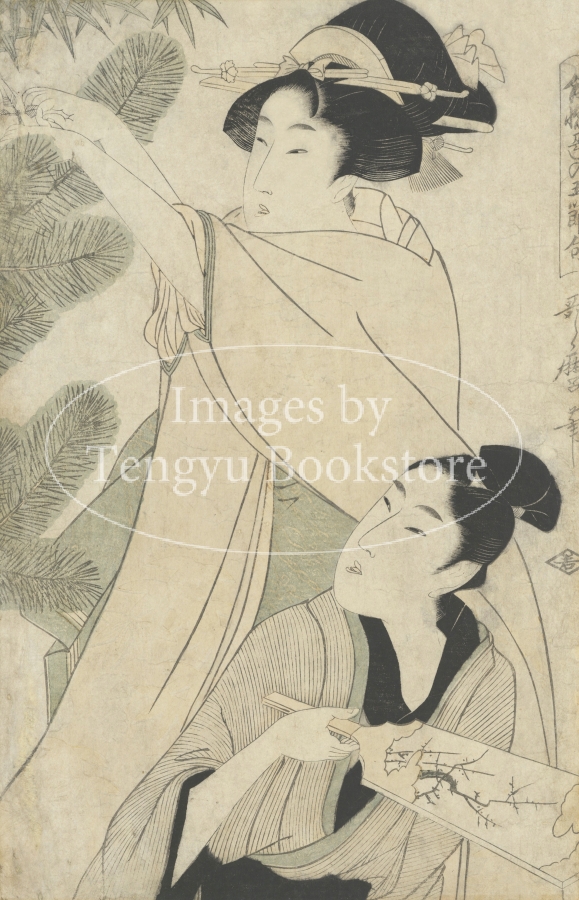 江戸時代を代表する浮世絵師 喜多川歌麿(1753-1806) による連作「合惚色の五節句」より、正月の風景です。