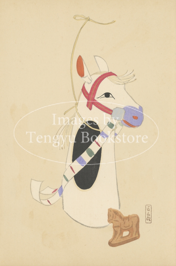 本画像は日本各地の郷土玩具を収集・研究・写生し、後におもちゃ絵の大家となった川崎巨泉のコレクションを、色刷木版画で再現した郷土玩具画集「巨泉おもちゃ絵集」収録の一枚。