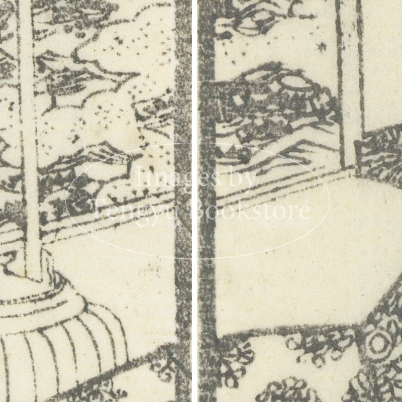 本来は2枚に分けて描かれた作品であるため、色味や図案の整合に若干の不統一があることをご了承ください。