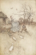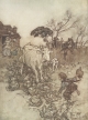 19世紀アメリカの作家ワシントン・アーヴィング(1783-1859)の短編に、イギリスを代表する挿絵画家のひとり、アーサー・ラッカム(1867-1939)がイラストを付けた挿絵本「リップ・ヴァン・ウィンクル」の挿絵。