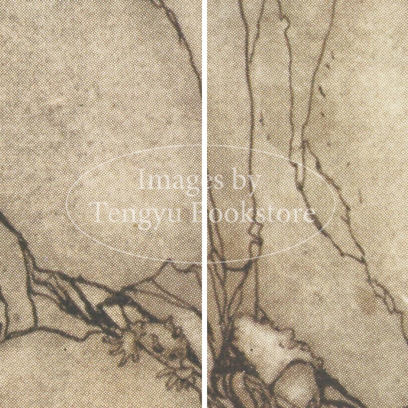 本来は2枚に分けて描かれた作品であるため、色味や図案の整合に若干の不統一があることをご了承ください。