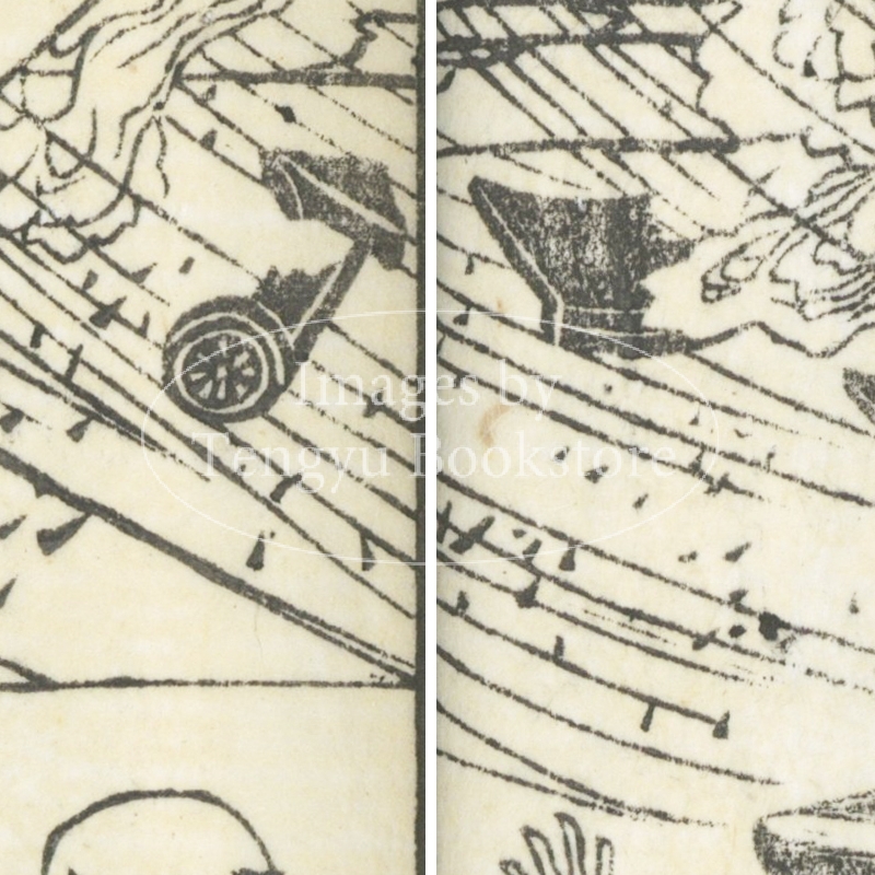 本来は2枚に分けて描かれた作品であるため、色味や図案の整合に若干の不統一があることをご了承ください。