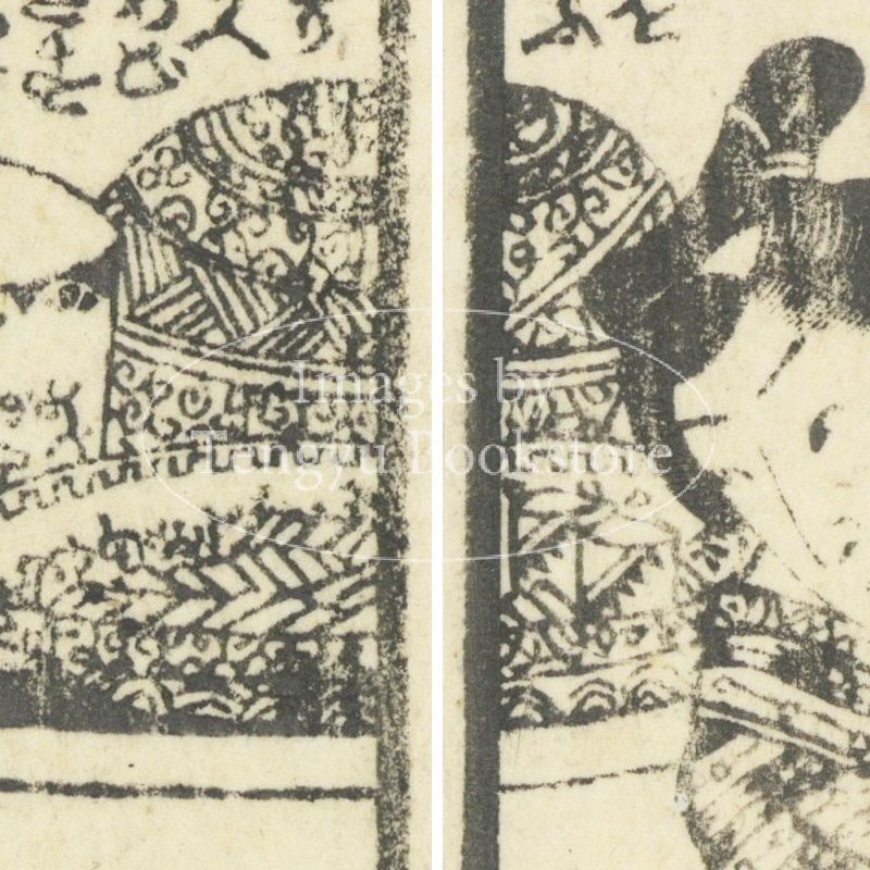 本来は2枚に分けて描かれた作品であるため、色味や図案の整合に若干の不統一があることをご了承ください。