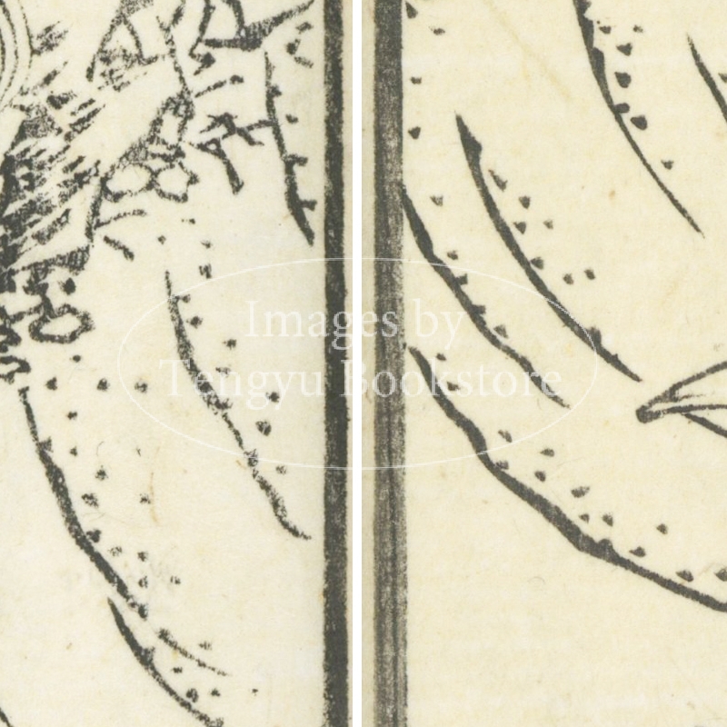 本来は2枚に分けて描かれた作品であるため、色味や図案の整合に若干の不統一があることをご了承ください。