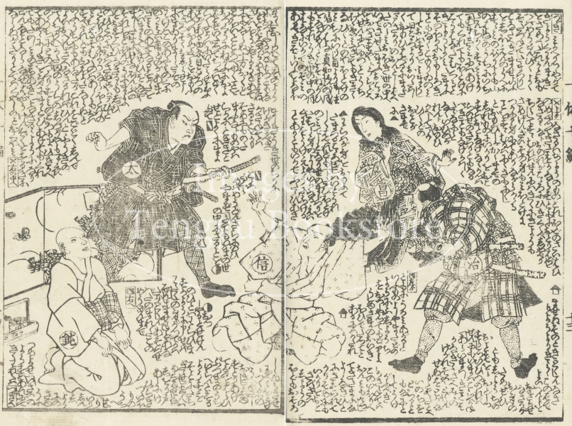 江戸後期の戯作者 柳下亭種員(1807-1858)・種員の門人 柳煙亭種久(生没年不詳)が物語を、浮世絵師の歌川国輝(生没年不詳)・二代国貞(四代豊国:1823-1880)・国芳(1798-1861)・芳幾(1833-1904)らが挿絵を描いています。