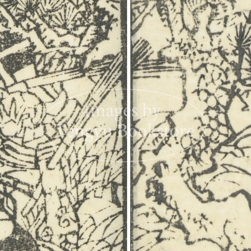 本来は2枚に分けて描かれた作品であるため、色味や図案の整合に若干の不統一があることをご了承ください。