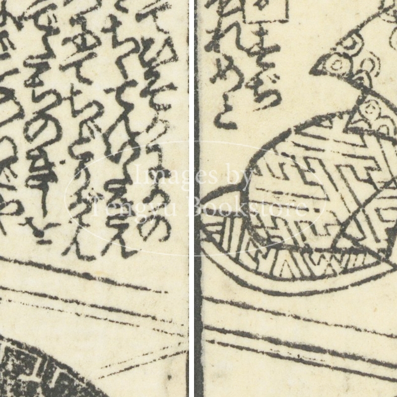 本来は2枚に分けて描かれた作品であるため、色味や図案の整合に若干の不統一があることをご了承ください。