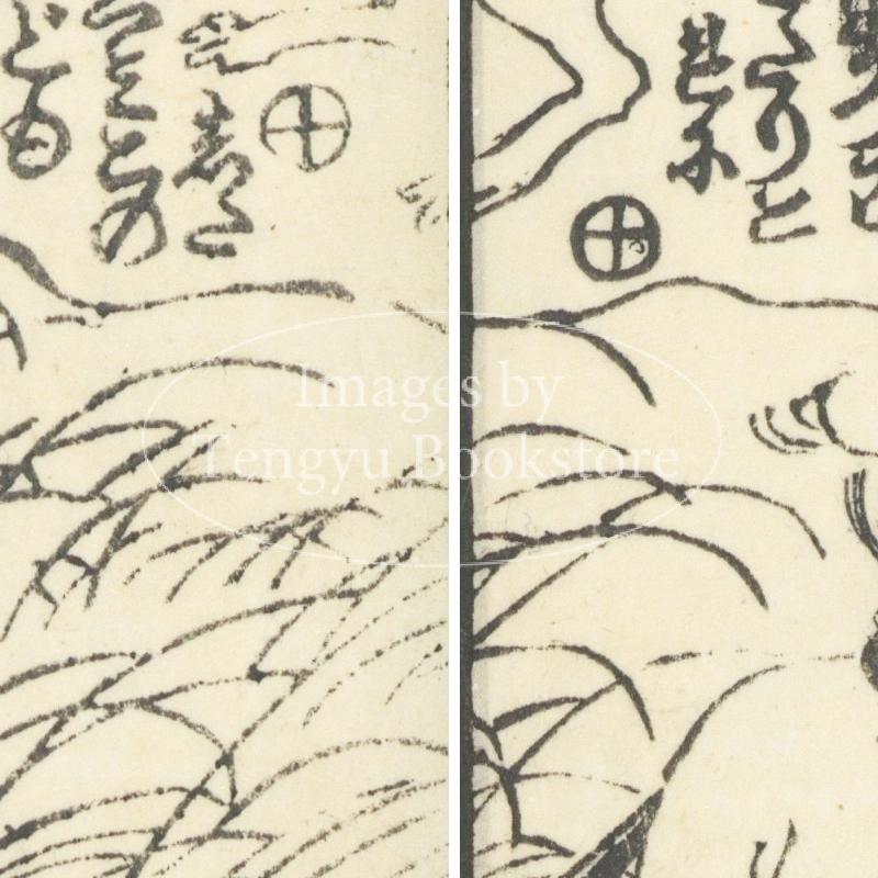 本来は2枚に分けて描かれた作品であるため、色味や図案の整合に若干の不統一があることをご了承ください。