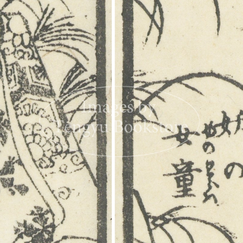 本来は2枚に分けて描かれた作品であるため、色味や図案の整合に若干の不統一があることをご了承ください。