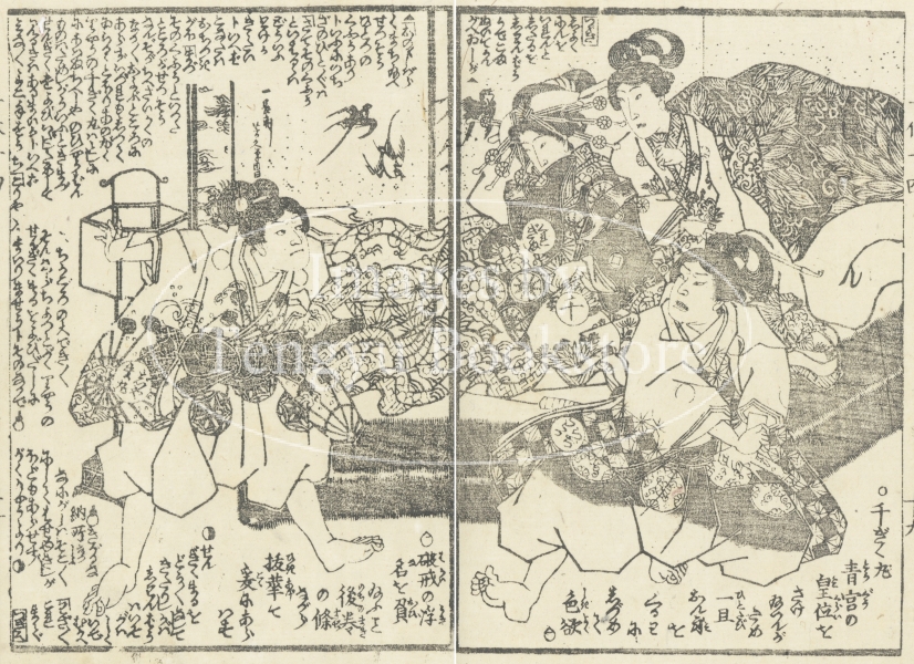 江戸後期の戯作者 柳下亭種員(1807-1858)・種員の門人 柳煙亭種久(生没年不詳)が物語を、浮世絵師の歌川国輝(生没年不詳)・二代国貞(四代豊国:1823-1880)・国芳(1798-1861)・芳幾(1833-1904)らが挿絵を描いています。