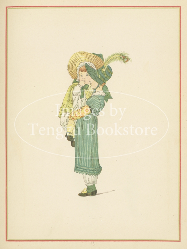 多色刷木版による色鮮やかで愛らしい絵本作品として好評を博しましたが、同時期に活躍していた絵本画家ケイト・グリーナウェイの作風と酷似していたため一部で物議を呼んだ問題作でもありました。