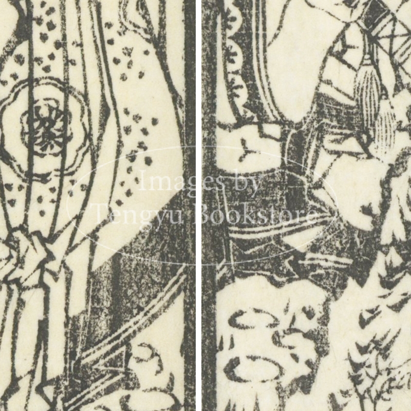 本来は2枚に分けて描かれた作品であるため、色味や図案の整合に若干の不統一があることをご了承ください。