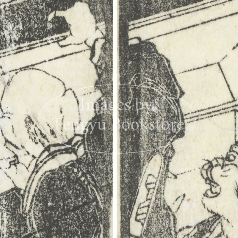 本来は2枚に分けて描かれた作品であるため、色味や図案の整合に若干の不統一があることをご了承ください。