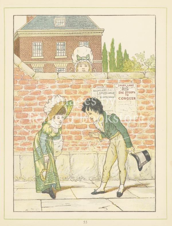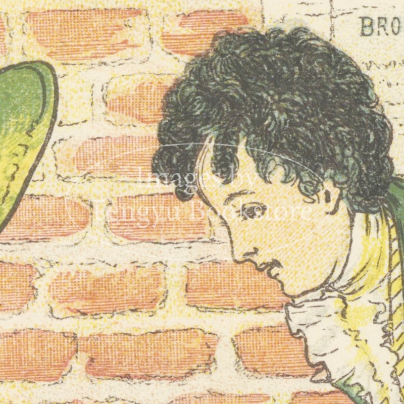 多色刷木版による色鮮やかで愛らしい絵本作品として好評を博しましたが、同時期に活躍していた絵本画家ケイト・グリーナウェイの作風と酷似していたため一部で物議を呼んだ問題作でもありました。
