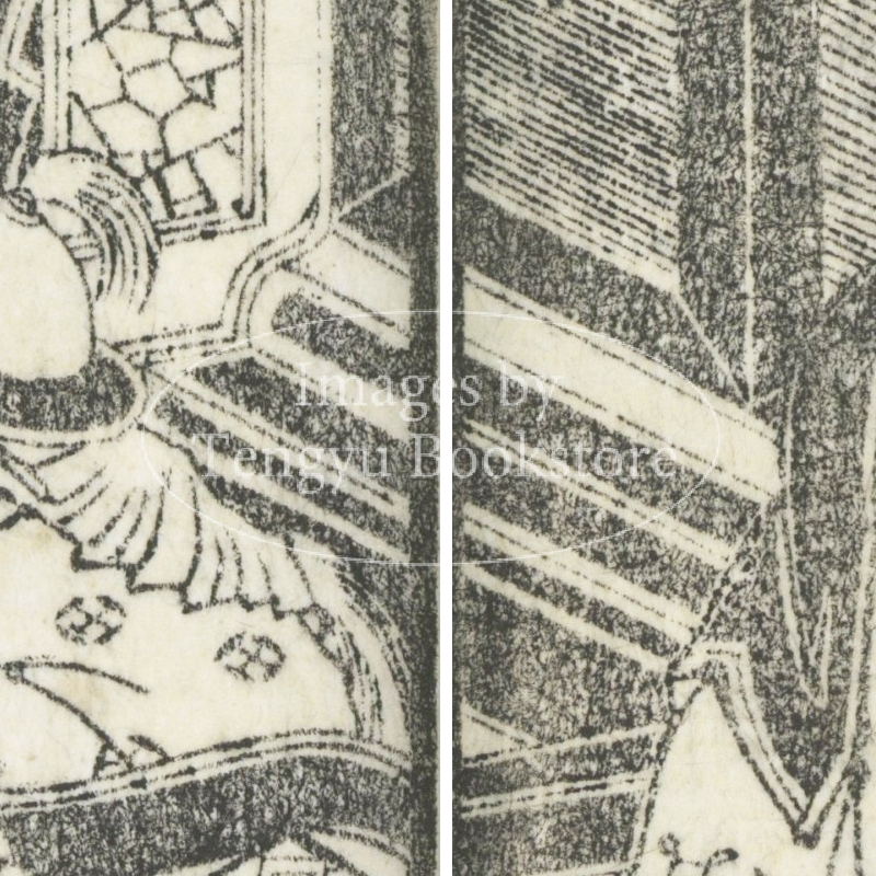 本来は2枚に分けて描かれた作品であるため、色味や図案の整合に若干の不統一があることをご了承ください。