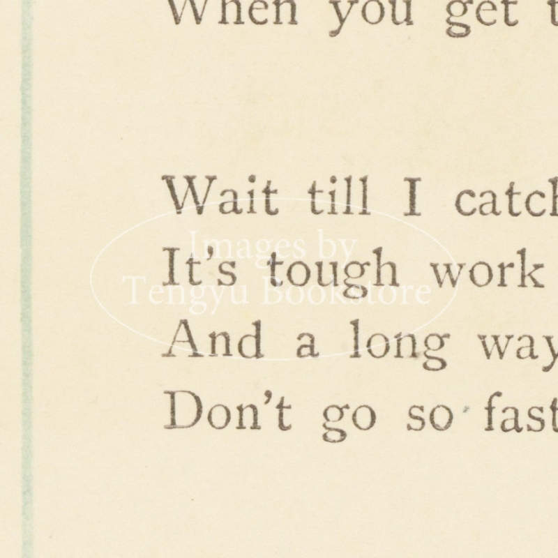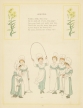 多色刷木版による色鮮やかで愛らしい絵本作品として好評を博しましたが、同時期に活躍していた絵本画家ケイト・グリーナウェイの作風と酷似していたため一部で物議を呼んだ問題作でもありました。