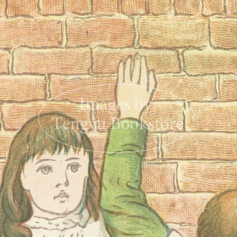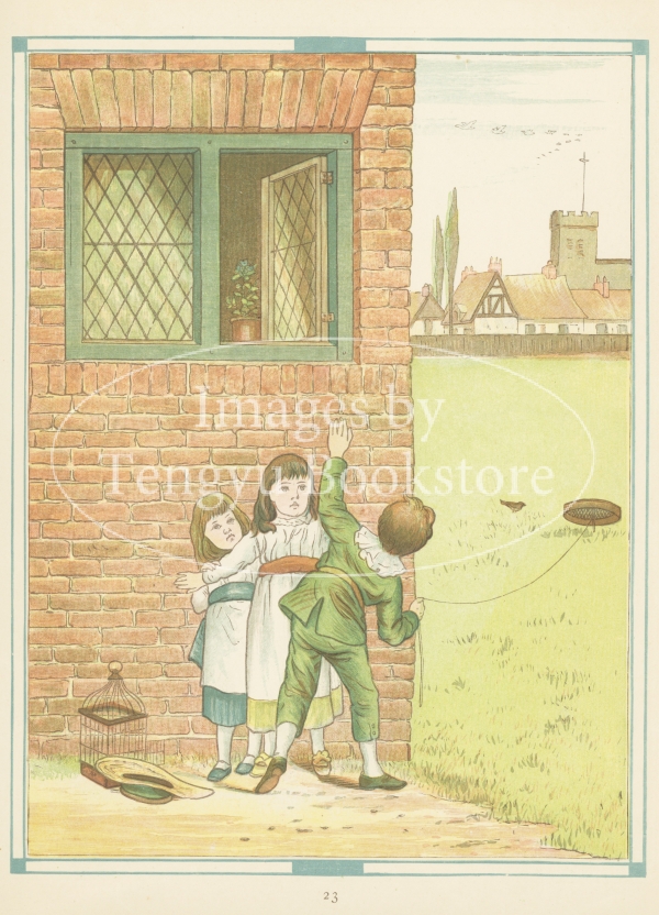 多色刷木版による色鮮やかで愛らしい絵本作品として好評を博しましたが、同時期に活躍していた絵本画家ケイト・グリーナウェイの作風と酷似していたため一部で物議を呼んだ問題作でもありました。