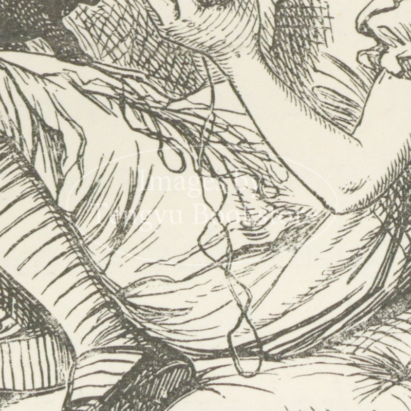「アリス」のイメージを決定づけた当時の人気挿絵画家ジョン・テニエル(1820-1914)が、「不思議の国」に引き続いて手掛けたもの。
