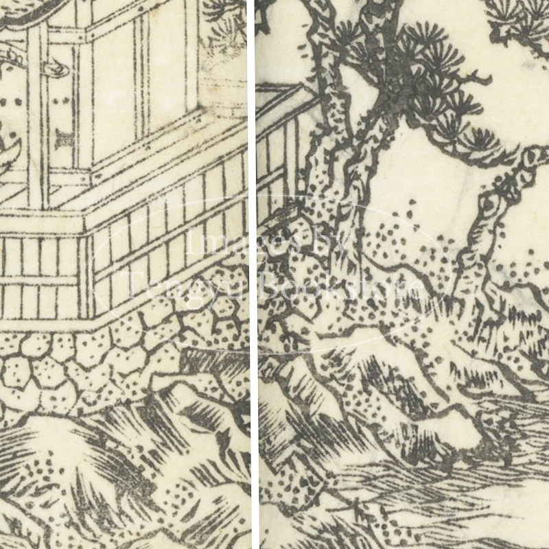 本来は2枚に分けて描かれた作品であるため、色味や図案の整合に若干の不統一があることをご了承ください。