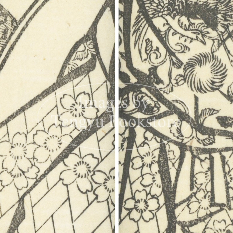 本来は2枚に分けて描かれた作品であるため、色味や図案の整合に若干の不統一があることをご了承ください。
