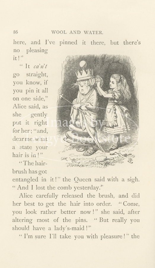 「不思議の国のアリス」で知られる19世紀末イギリスの作家ルイス・キャロル(1832-1898)による、「不思議の国」の続編「鏡の国のアリス」(people's edition)の挿絵。