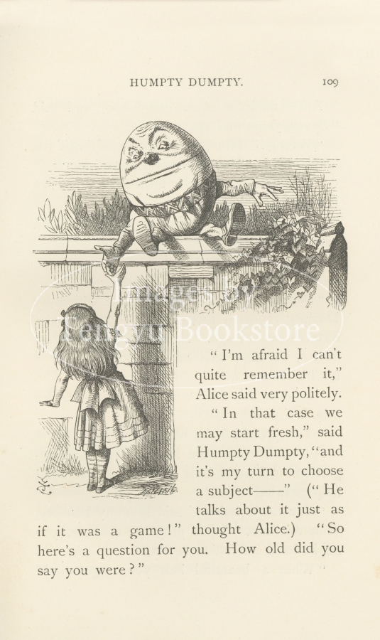 「不思議の国のアリス」で知られる19世紀末イギリスの作家ルイス・キャロル(1832-1898)による、「不思議の国」の続編「鏡の国のアリス」(people's edition)の挿絵。