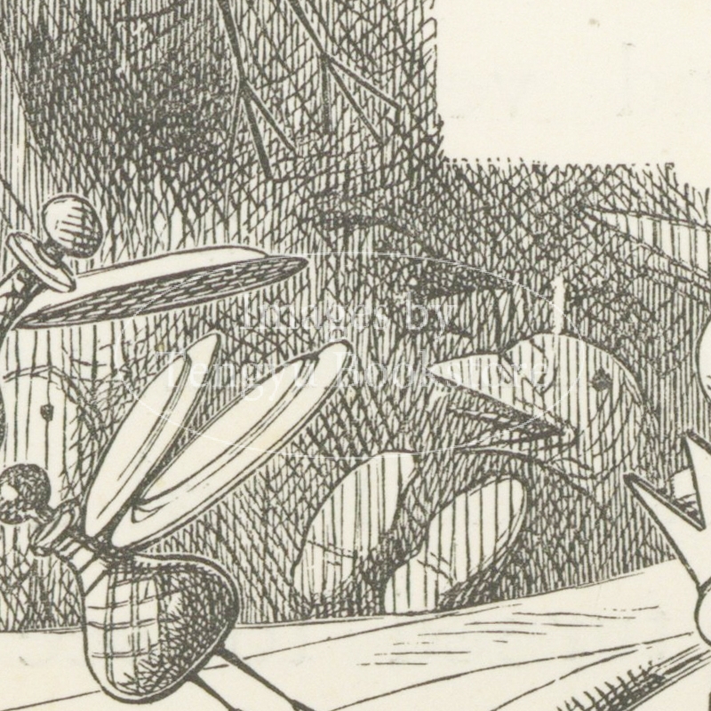 「アリス」のイメージを決定づけた当時の人気挿絵画家ジョン・テニエル(1820-1914)が、「不思議の国」に引き続いて手掛けたもの。