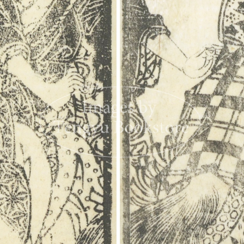 本来は2枚に分けて描かれた作品であるため、色味や図案の整合に若干の不統一があることをご了承ください。